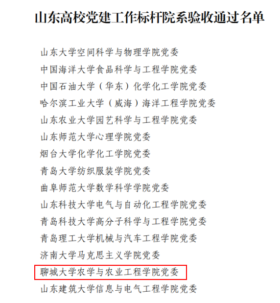 日前,山东省委教育工委公布了第二批山东高校党建“双创”培育创建工作验收通过名单,Ky开元集团党委(原Ky开元集团农学与农业工程学院党委)圆满完成“山东高校党建工作标杆院系”培育创建任务,通过验收。