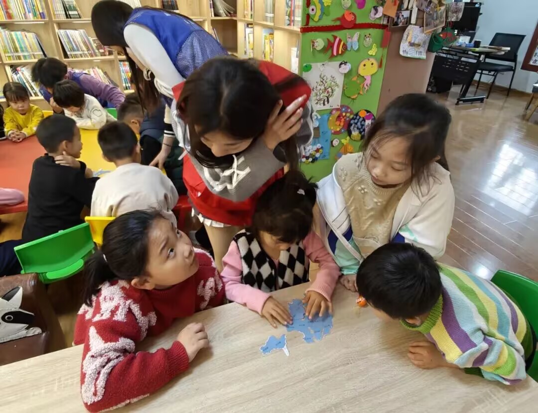最具创意的当属地图拼接环节,拼图板块恰似往昔被列强瓜分的国土,孩子们郑重地拿起板块,专注拼接,缝隙渐合,祖国完整版图重现眼前,“寸土不让”的信念于幼小心间扎根生长。接着,知识竞赛环节将气氛推向高潮,孩子们分组抢答有关红色历史的题目,踊跃登台讲述英雄故事,展现出扎实知识储备与昂扬风貌,既检验了学习成果,更点燃了小朋友们深入探索红色文化的热情。