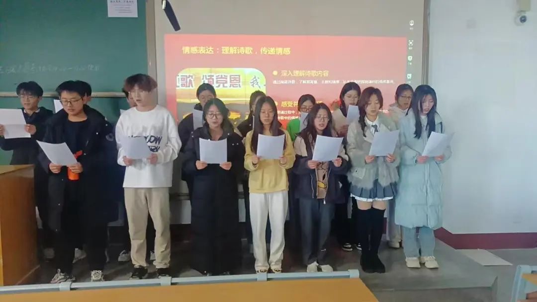 活动伊始,负责人满怀深情地向同学们讲述沂蒙精神的丰富内涵,以及那些在沂蒙大地上发生的可歌可泣的英勇事迹,带领大家穿越时空,回到那段波澜壮阔的革命岁月。紧接着,数十名聊大学子纷纷登台,用嘹亮的歌声抒发对沂蒙精神的敬仰。当演绎《沂蒙山小调》时,同学们以悠扬的旋律、质朴的歌声,勾勒出沂蒙山区的旖旎风光,淋漓尽致地抒发了人民对家乡的深厚热爱之情。而在演唱《我和我的祖国》之际,现场氛围被推向最高潮,激昂的歌声于校园上空久久回荡,彰显出新时代青年对祖国的赤诚告白。歌声时而激昂奋进,时而深情婉转,呈现出沂蒙山区人民在革命战争年代,不惧艰难险阻、无私奉献的伟大精神,以及在新时代中砥砺前行、拼搏奋进的壮志豪情。每一个跳动的音符,皆饱含着同学们对沂蒙精神的深刻领悟与诚挚敬意 ,承载着对红色文化的传承与弘扬。演唱结束后,同学们围坐在一起,分享自己在准备歌曲过程中的感悟与体会。大家踊跃发言,积极交流,共同探讨沂蒙精神在当今时代的重要意义,现场气氛热烈非凡。