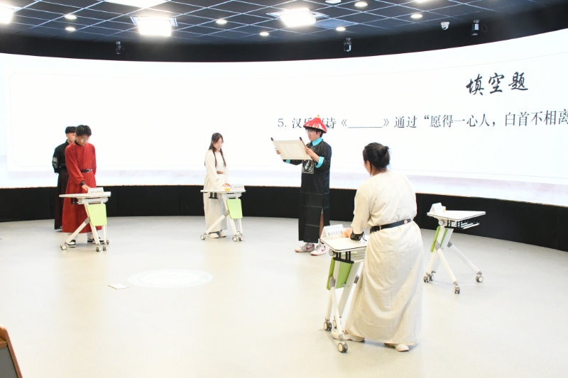 5月23日至25日,知识竞赛通过易班平台开展,设置多元题型,内容涵盖诗词歌赋、传统节日、非遗技艺等文化领域,系统考察同学们对工匠精神、礼乐文明、典籍智慧等传统文化的储备与理解能力,实现知识竞答与文化浸润的双重效果。同学们在沉浸式答题中既检验了传统文化知识储备,也充分感受国风文化的独特魅力。经多轮筛选与严格评判,12名来自不同学院的代表选手,凭借扎实学识与出色应变能力脱颖而出,晋级会试与殿试。