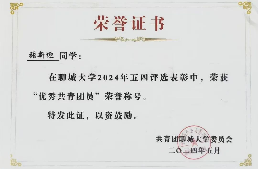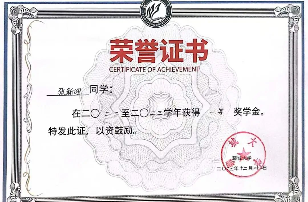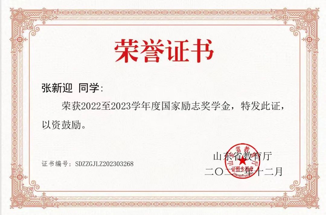 国家奖学金获得者——张新迎