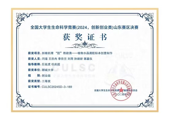 开元官网刘雨同学在全国大学生生命科学竞赛山东赛区中荣获三等奖,对该获奖同学予以祝贺表彰。