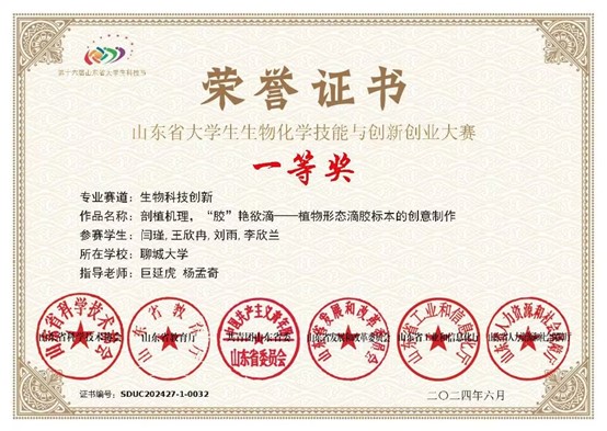 开元官网刘雨同学在山东省大学生生物化学技能与创新创业大赛中荣获一等奖,对该获奖同学予以祝贺表彰。