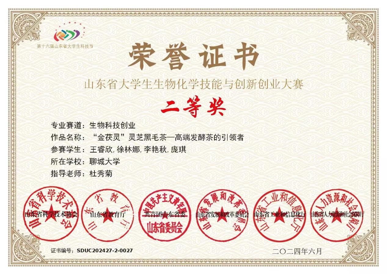 开元官网庞琪同学在山东省大学生生物化学技能与创新创业大赛中荣获二等奖,对该获奖同学予以祝贺表彰。