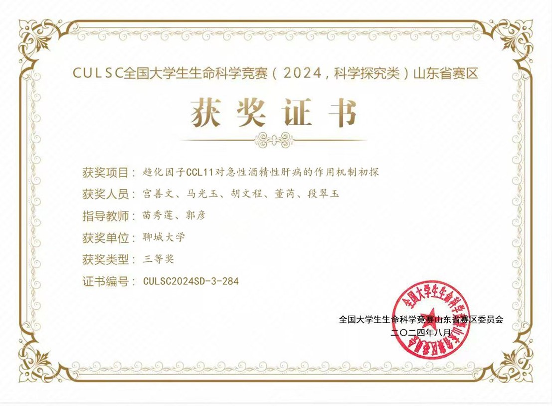 开元官网胡文程同学在全国大学生生命科学竞赛山东赛区中荣获三等奖,对该获奖同学予以祝贺表彰。