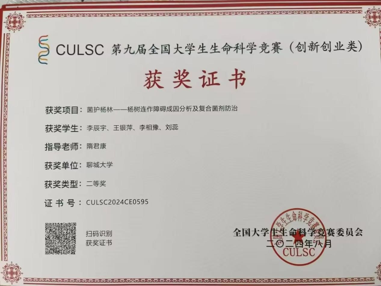 开元官网刘蕊同学在CULSC第九届全国大学生生命科学竞赛中荣获二等奖,对该获奖同学予以祝贺表彰。