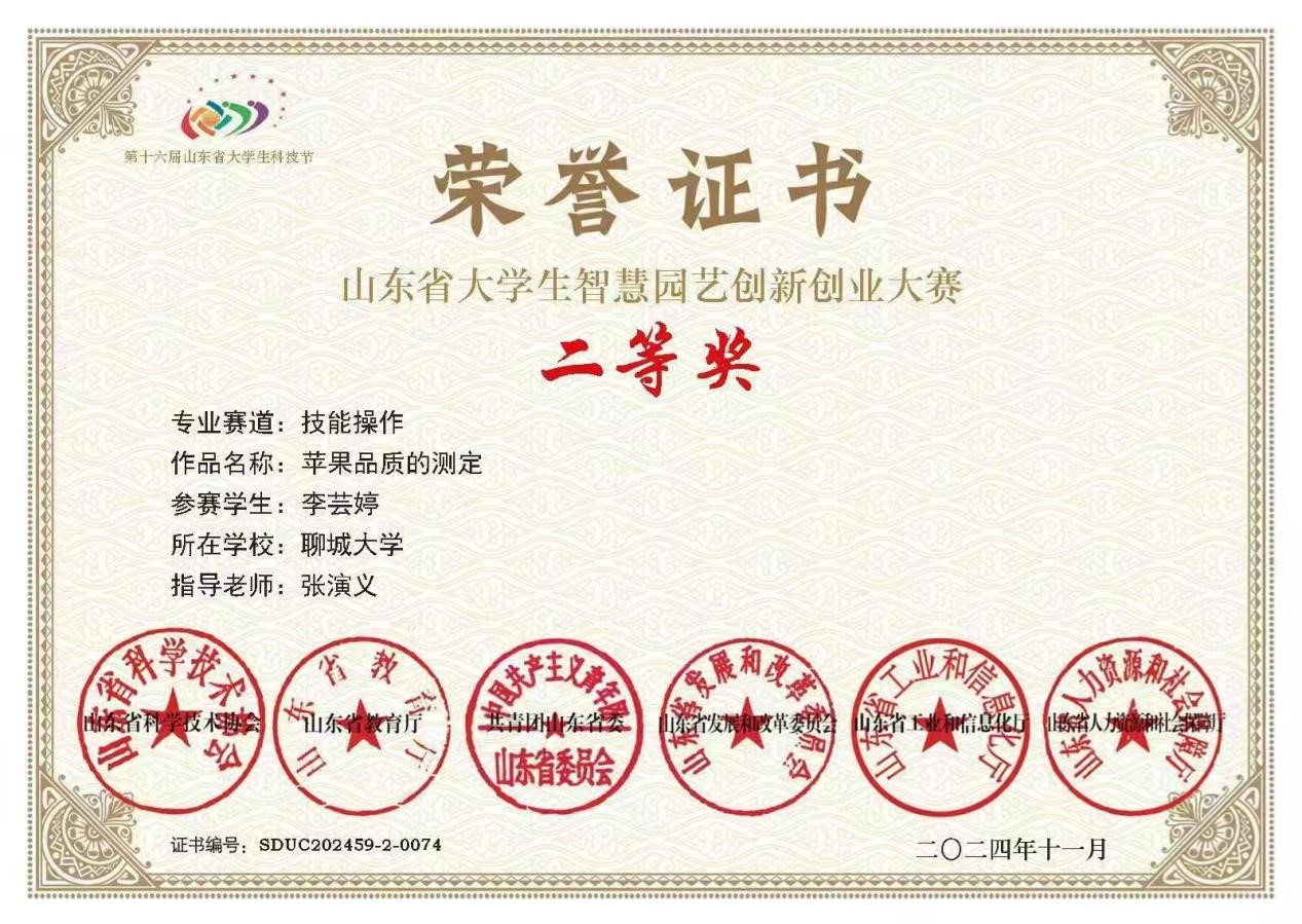 开元官网李芸婷同学在山东省大学生智慧园艺大赛中荣获二等奖,对该获奖同学予以祝贺表彰。