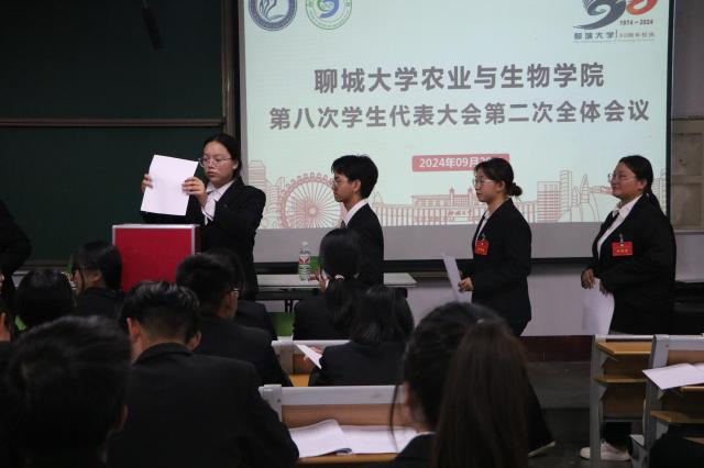大会宣读并审议通过《Ky开元集团学生会工作报告》及《聊城大Ky开元集团学生会章程修正案》。最后,学生代表进行现场投票,本着公平、公正的原则,选出了Ky开元集团2025届学生会轮值主席团成员及参加Ky开元集团第十次学生代表大会代表,逯海凤、孙梦杰、马光玉为新一届学生会主席团成员。会议最后,王艺桦宣读《致全院青年学生的倡议书》,号召学院学生会全体同学要秉承“耕智尚学,生科致远”的院训,奋力书写为中国式现代化挺膺担当的青春篇章。在圆满完成各项议程后,大会在校歌中落幕。